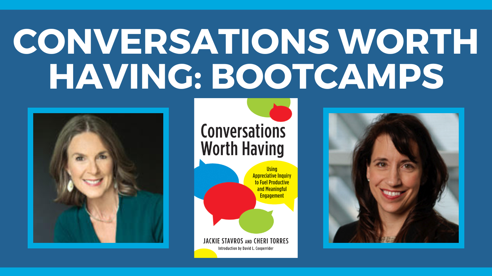 Events Conversations Worth Having: Bootcamps April 26, 2023 - May 5, 2023 12:00 PM - 2:30 PM $1,498 Save $240 if you register with the code CWHEB by April 12, 2023. More information & Registration Communication It remains the top issue for organizations, teams, and relationships. Almost everyone struggles with how to effectively communicate when they are frustrated or facing conflict. The effects of poor communication are costly. They show up in organizations as: Employee disengagement, malaise, and turnover Dysfunctional teams Poor performance Inability to give and receive critical feedback Negative attitudes, cliques, and gossip: a culture of “me” If you’re dealing with any of these outcomes, the Conversations Worth Having Bootcamp will give you the skills and tools to turn them around. This program is grounded in Appreciative Inquiry, one of the most widely used positive change approaches. Two simple Appreciative Inquiry practices can turn your entire culture around, creating a culture of conversations worth having. Date & Time April 26, 2023 - May 5, 2023 12:00 PM - 2:30 PM Add to Google Export to Calendar Cost $1,498 Save $240 if you register with the code CWHEB by April 12, 2023. Location (URL) More information & Registration Have an event you'd like to share? Send it our way!